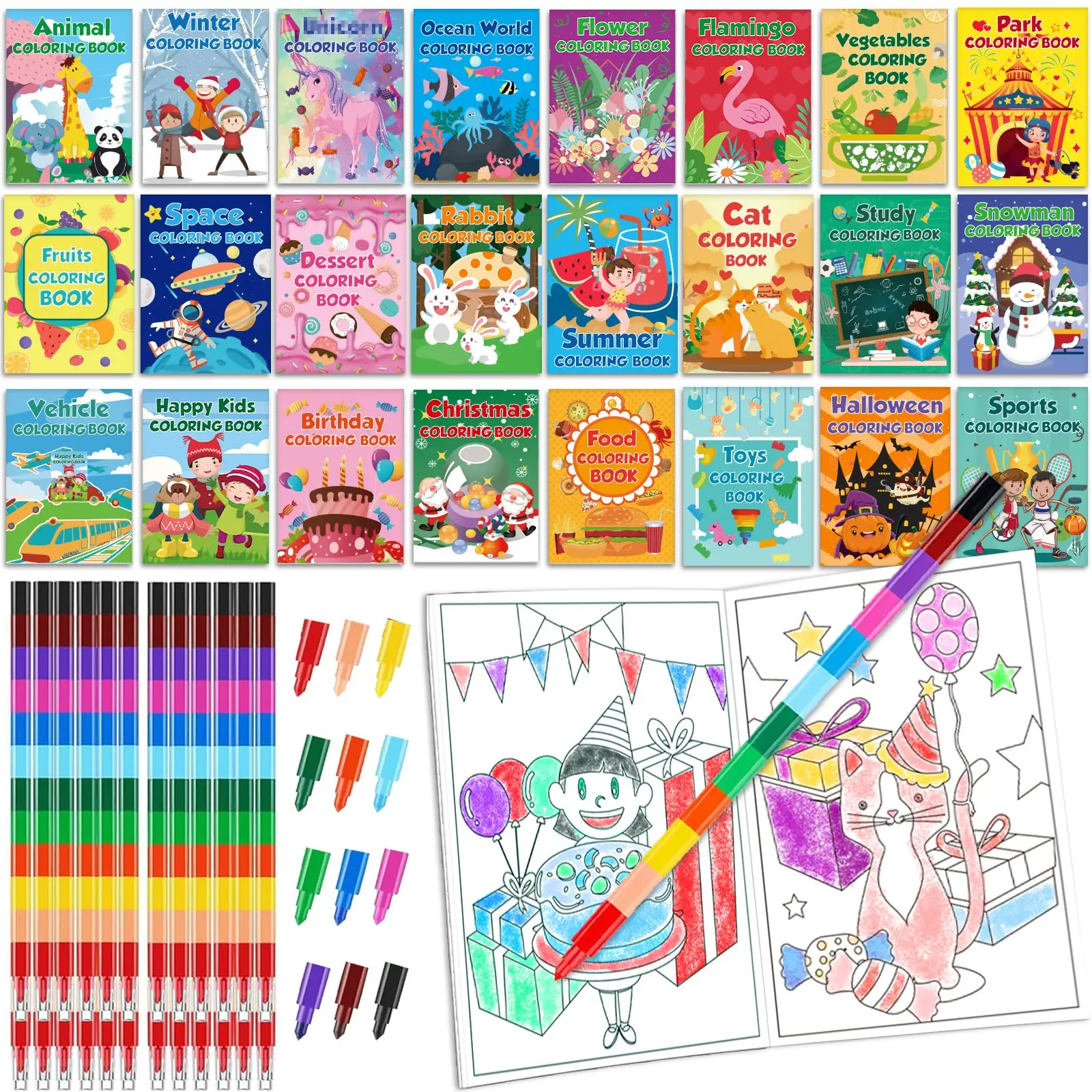 24-Pack Small Coloring Books for Kids with 24 Stacking Crayons Set Bulk Coloring Books for Kids Ages 2-4, 4-8, 8-12 Mini Coloring Books for Birthday Party Gifts Goodie Bags Stuffers Classroom Activity